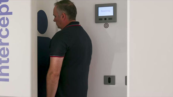 More than 2,000 jails, prisons and detention facilities use x‐ray body scanners to search inmates. The subject simply stands on the Intercept stationary platform for a quick 3.8-second scan. Instantly, a detailed x‐ray image appears on the high‐resolution monitor, showing objects under the clothing and within body cavities.